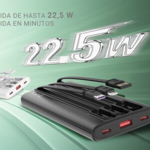 Be the first to review “MX0131 Power Bank 10000mAh with 3 Cables – 22.5W Super Fast Charging, 3-in-1 Built-in Cables (Type C/Lightning/Micro USB), Portable ABS+PC White&black”