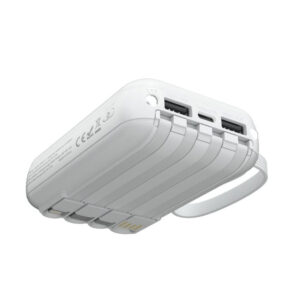 Be the first to review “MX0137 Slim Power Bank 5400mAh with 4 Cables – Ultra Portable, 4 Built-in Cables (Type C/Lightning/Micro/USB-A), 5V/2A Output, ABS+PC White” Cancel reply